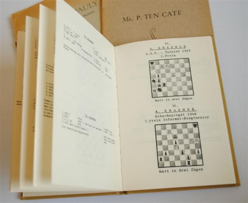 Das Schachproblem als Kunstwerk. Walther Horwitz. Europ. Verlag. Wien. 1957 together with: Zo sprak Wolfgang Pauly, Dr. M. Niemeijer, Wassenaar. 1948 and Probleemcomponisten IX. Mr. P. ten Cate. publ by Ned. Bond Probleemvrienden. 1961