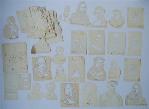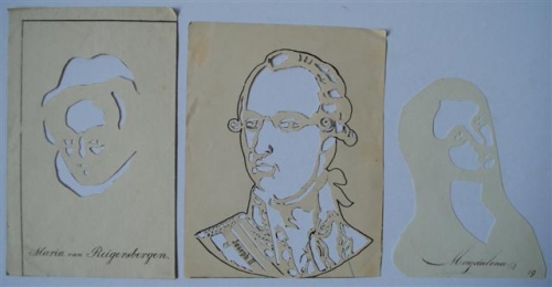 This item contains no English description. See the Dutch description: Lot met ca. 50 handgemaakte schaduwbeelden, ca. 1835. Door Henriette Musquetier.