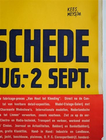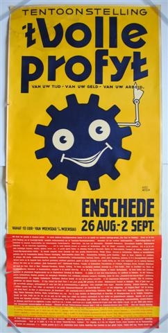 See the Dutch description: Tentoonstelling 't Volle Profijt van uw tijd - van uw geld - van uw arbeid. Enschede 26 aug.- 2 sept. 1936. Poster met daaronder geplakt tekstdeel.