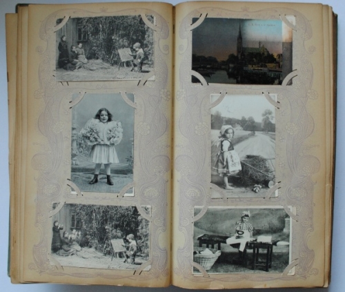 This item contains no English description. See the Dutch description: Album met ca. 400 ansichtkaarten, grotendeels topografie. (Nederland en buitenland) Meest tussen 1900-1920 uitgegeven.
