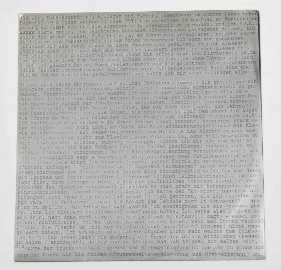 This item contains no English description. See the Dutch description: 33 rpm, Lebeer-Hossmann, Brüssel mit /Hansjörg Mayer, Stuttgart, 1978. No. 293 of 300 signed copies. Very good copy.
