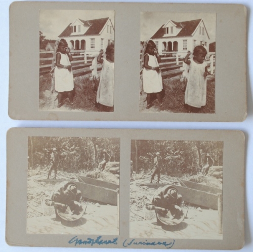 This item contains no English description. See the Dutch description: 34 kaarten, zw.-w., ca. 1920. Alle mbt. bevolking en landschap Suriname en Zuid Amerika.