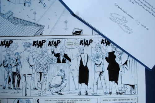 This item contains no English description. See the Dutch description: Carry Brugman, Strip 2000. Gekartonneerd linnen album in luxe cassette. Met originele tekenplaat (pag. 9). Oplage van 46 genumm. ex.