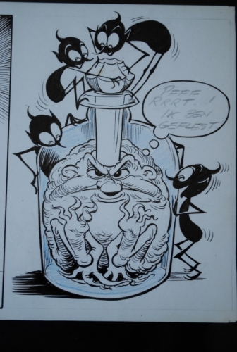 * Vlak na de periode de Toonder Studios heeft Piet Wijn enkele verhalen voor publicatie gemaakt. Deze strook is van een van deze verhalen, maar werd nooit gepubliceerd. Afbeelding p. 145 in biografie Piet Wijn door Olivier Sterk.