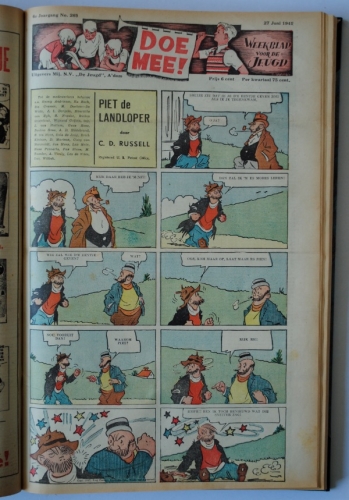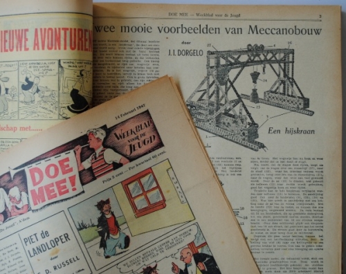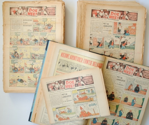 See the Dutch description: Weekblad, uitgeverij de Jeugd. Met veel vroeg werk van Marten Toonder. Ruim 200 nummers uit het 5e en 6e jaargang, 1940-41 (met doublures). Enkele nummers met kapotte rug en enkele nrs. incompleet. Meest in goede staat en compleet. Een deel is ingebonden in 1 band.