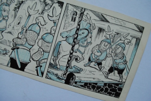 This item contains no English description. See the Dutch description: Ca. 1958. Plaat 16 E. In zw.-w. Oost-Indisch inkt met blauwe steunkleur. 11 x 36 cm