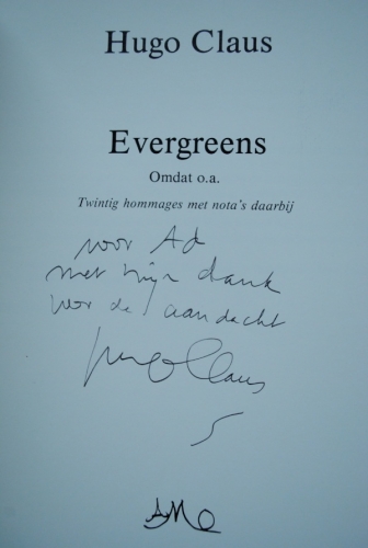 See the Dutch description: AMO, Amstelveen, 1986. Met opdracht en signatuur van Hugo Claus. Oplage 195 ex. waarvan 150 Arabisch genumm. bestemd voor vrienden en relaties van het Vlaams Cultureel Centrum en de Nederlandse Taalunie. Uitgave bij uitreiking van de Prijs der Nederlandse Letteren aan Claus in 1986.