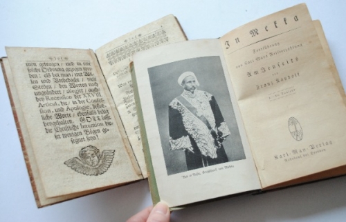 See the Dutch description: Augsburgischer Confesssions-Jubel-Catechismus, 1730, 104 pp. + In Mekka, Fortfuhrung von Karl Mans Keiseerzahlung Am Zenseits von Franz Randolf. 356 pp. met 4 foto's in zwart-wit.