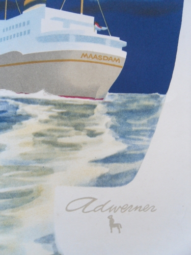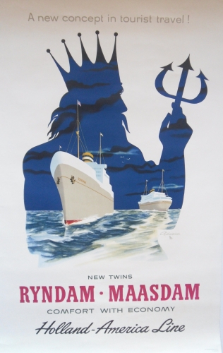 See the Dutch description: A new concept in tourist travel! New Twins, Ryndam - Maasdam, comfort with new economy, Holland-America Line. Ontw. Ad Werner, Joh. Enschede en zonen, Haarlem, 1950