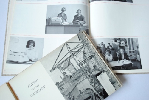 See the Dutch description: 1966. 102 p. Druk Kon. Grafische Kunstinrichting J. van Poll Suykerbuyk, Roosendaal. Foto's Raoul vd boom, Jim Brair, e.a., Clichés Nauta & Haagen, Amsterdam. + 100 jaar gas, Delft, 1955. Uitg. onbek. oblong ringband fotoalbum, met aan linkerzijde tekstdeel.