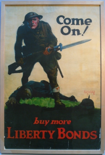 See the Dutch description: Come on! Buy more Liberty Bonds. Ontwerp Walter Whitehead, Uitg. Cincinnati: Strobridge Litho.Co, 1918.