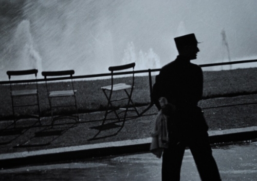 See the Dutch description: Een vrouw loopt op straat met een slapend kind in haar armen, Parijs, Wereldtentoonstelling van 1937. Deze foto is later geprint. Op de achterkant de copyrightstempel van Besnyö: 'copyright Eva Besnyö, fotografe gkf, Amsterdam'.