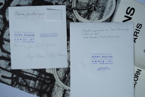 See the Dutch description: Hugo en Elly Claus, Rome 1954. Vintage Print. Met stempel Copyright Henny Riemens 5, Rue Jean Ferrandi, Paris - 6me. 17,5 x 16,2 cm. + Foto Henny Riemens: Pierre Alechinsky, Nina Dausset voor galerie. - en 2 expositieposters Henny Riemens, uit 1973, Parijs en 1978, Amsterdam.