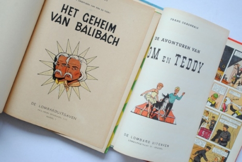 See the Dutch description: Lombard Collectie, 1956. Gebonden met linnen rug. Naam op voorplat (klein, weinig zichtbaar) verder mooi exemplaar. + Het Geheim van Balibach, 1960. Gebonden met linnen rug, goed ex. Beide met kuifjespunt.