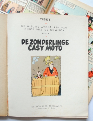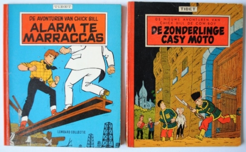 See the Dutch description: De Zonderlinge Casy Moto. Lombard Collectie, 1956. Zonder Kuifjespunt. Onderste cm. rug ontbreekt, verder goed exemplaar + Alarm te Marraccas, Lombard Collectie, 1961. Mooi exemplaar.