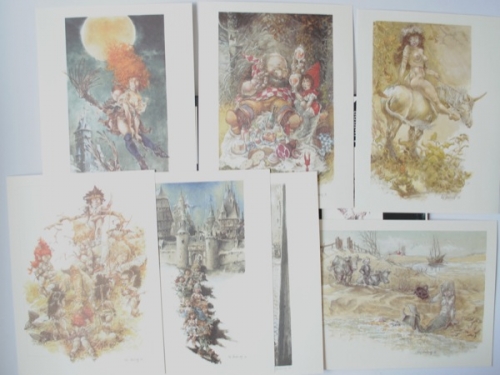 See the Dutch description: Wonderland Half-vier productions, 1994-95. Met 7 zeefdrukken van 40 x 30 cm. Nr. 30/100 - en René Hausman - Ondeugende Vertellingen. Met 7 serigrafieën van 30 x 40 cm. Nummer 34/200. Beiden gesigneerd.