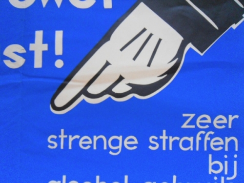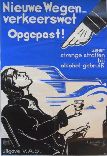 This item contains no English description. See the Dutch description: Zeer strenge straffen bij alcohol-gebruik. Ontwerp NVZ, uitg. V.A.S., ca. 1965.