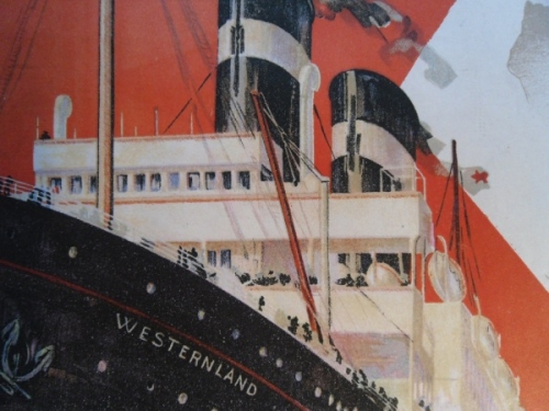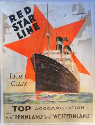 See the Dutch description: Red Star Line, Tourist Class, Top accommodation on S.S Pennland and Westernland. Uitg. L. Gaudio, Anvers (Antwerpen), ca. 1930.