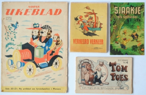 VIVO, Amsterdam, ca. 1956. 14 p. geniet. Net exemplaar + Tom Poes en de Betoverde Spiegel, 2e Serie, no 4, Norsk Ukeblad, 21, 1958 - en Verkeerd Verkeer, RPS, 1953, hoofdstuk I en IV t/m XV als losse bladen in mapje.