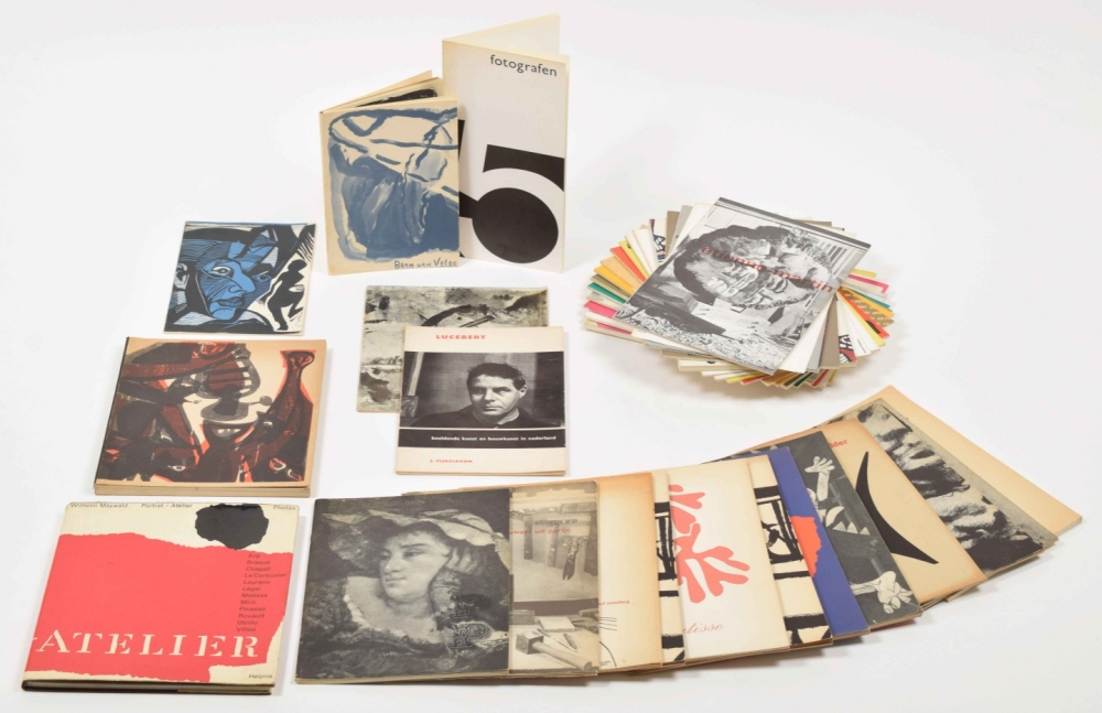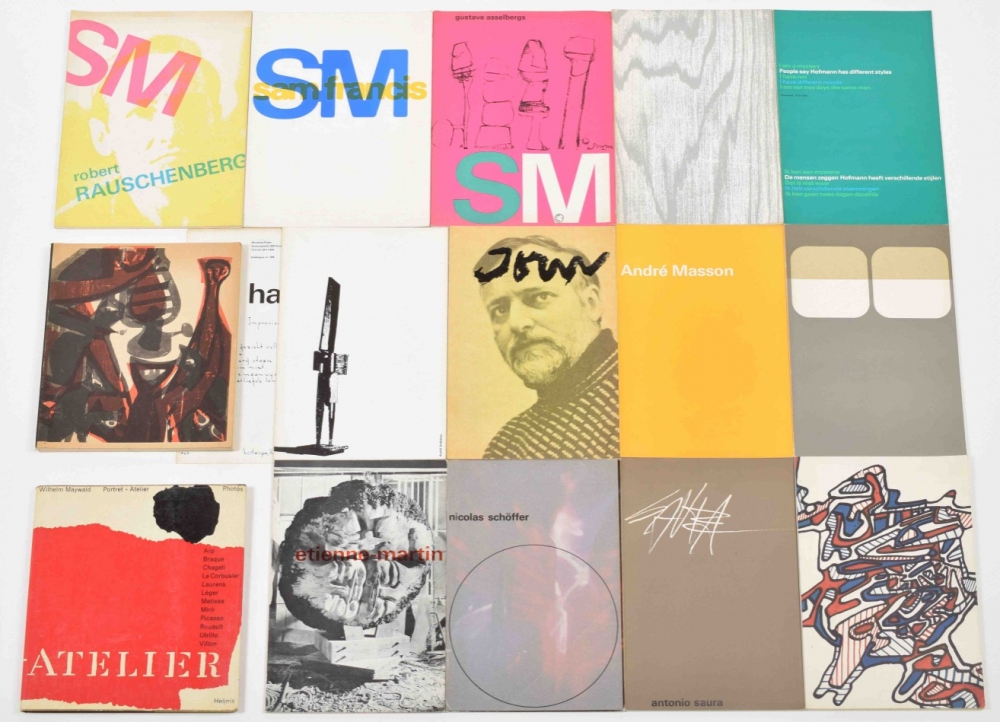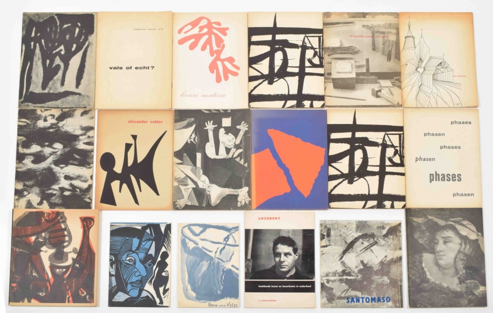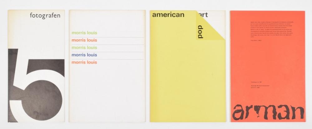 Collection exhibition catalogues, mainly published by the Stedelijk Museum Amsterdam (c. 1957-1978), partly designed by Wim Crouwel. A.o. Morris Louis, no. 373; American Pop Art, 364; Arman, no. 365; 5 fotografen (a.o. Sanne Sannes), 1964 -and 32 more.