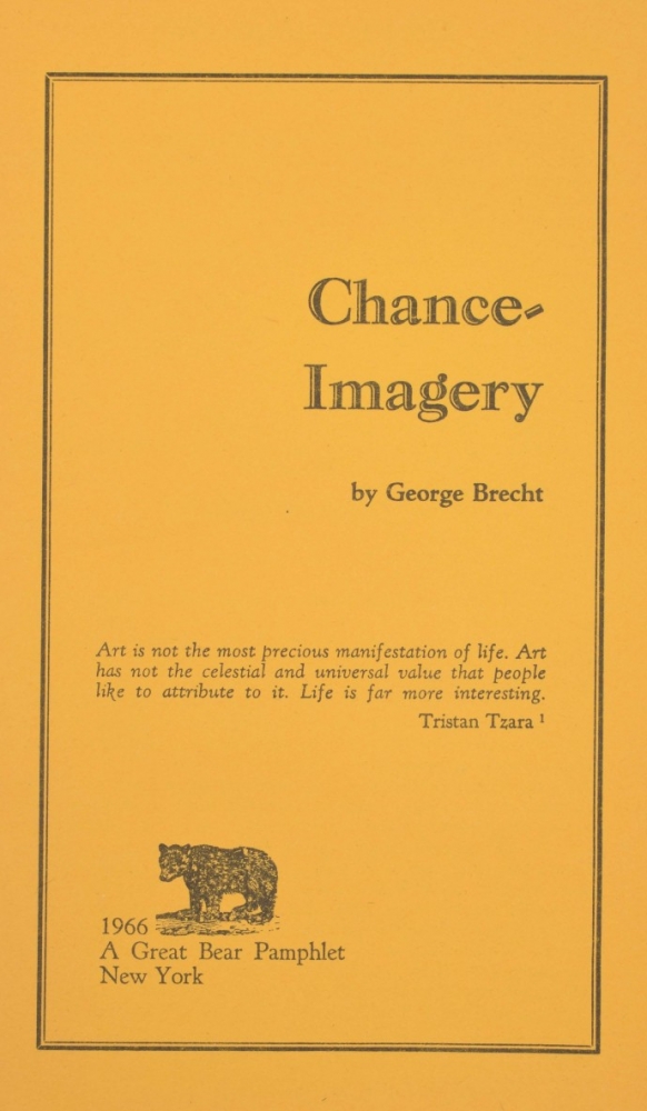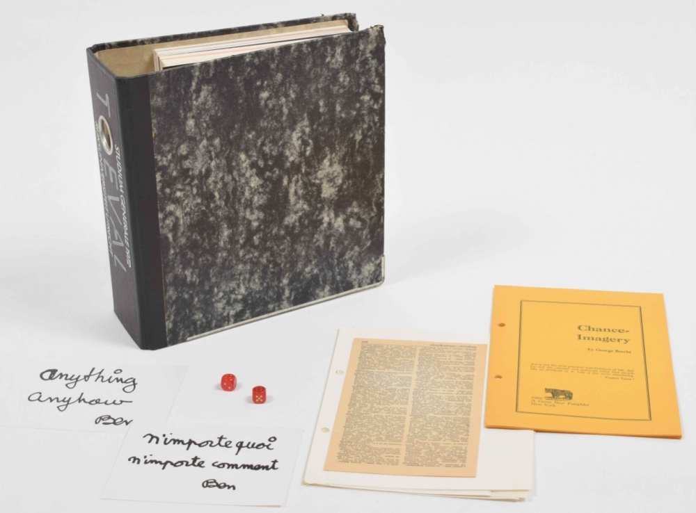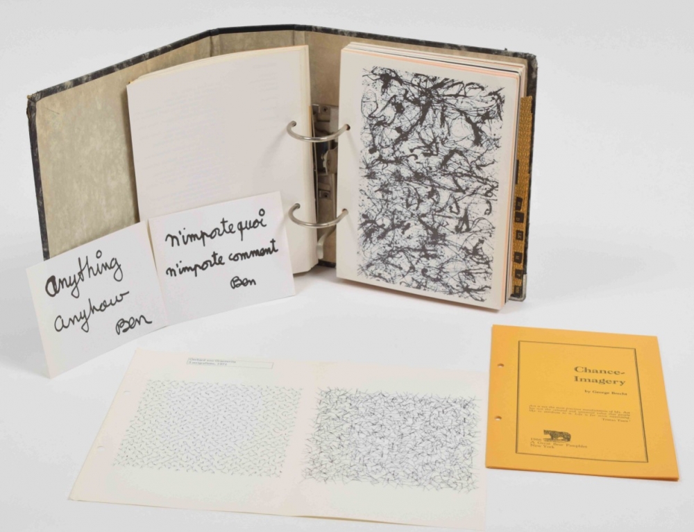 Includes the programme and contributions by celebrated artists such as Vito Acconci, George Brecht, John Cage, Douglas Huebler, David Medalla, Diter Rot and Herman de Vries. Texts by Frans Haks and others, design by Anthon Beeke. Edition of 2000 copies. + This version includes the extra items (loose in envelope) that are often missing: the pamphlet Chance Imagery by George Brecht, 2 red dice, cards by Ben Vautier to be pasted in, and a signed sheet by Morellet. Moderate wear at top corners of the binder, else in very good condition. Rare. (total 2)