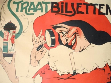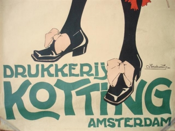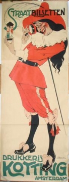 Litho. Ch. Verschuuren Jr., ca 1920. Groot affiche in 2 dln, origineel aan elkaar bevestigd. Reclame voor posterreclame. 214 x 80 cm.