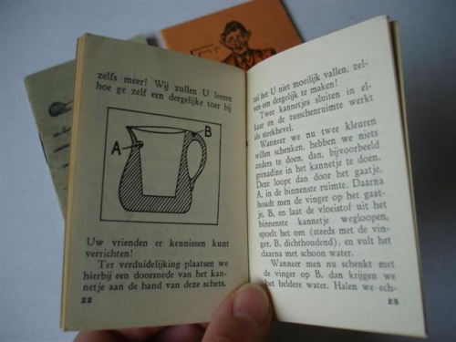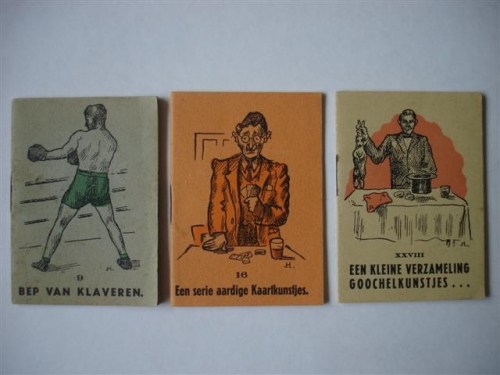 See the Dutch description: Klein formaat reclameboekje jaren '30, geniet,32 pag. + deel 16 Een serie aardige Kaartkunstjes en deel 28 Een kleine verzameling goochelkunstjes...