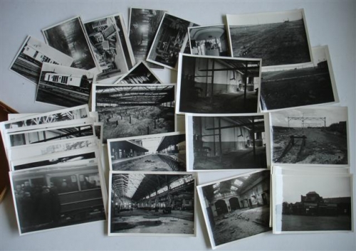 See the Dutch description: LOT met ca. 50 zwart-wit foto's. Foto's van vernielingen aan het spoor door de Duitsers in WO-II. ca. 35 foto's ca. 18 x 13, ca. 15 foto's ca. 8 x 11 cm. Vernielingen aan spoor, stations, gebouwen etc. (totaal ca. 50)