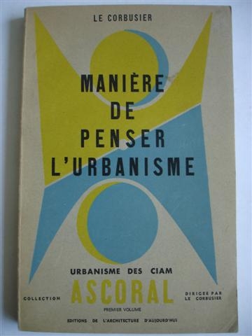 See the Dutch description: LE CORBUSIER. Maniere de penser l'urbanisme. Urbanisme des ciam, collection Acoral. Dirigee par Le Corbusier. Premier Volume. Editions de l'Architecture Aujourd'hui. 1946. 184 p. Ing. orig. pap. omsl. Met afb. Gaaf ex.