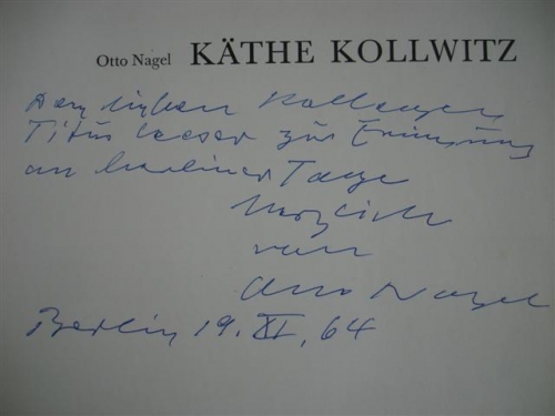 Met opdracht van de schrijver / kunstenaar Otto Nagel aan Titus Leeser op titelpagina: "Dem Lieben Kollegen / Titus Leeser zur Erinnerung / an herrliche Tage / Herzlich / von / Otto Nagel / Berlin, 19. XI.1964." Met monogram