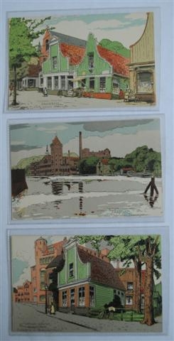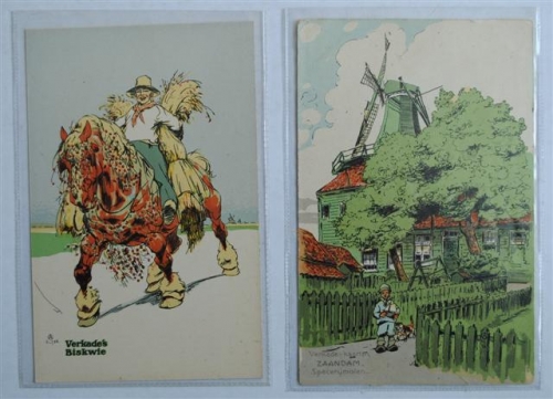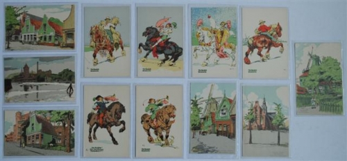This item contains no English description. See the Dutch description: Ontwerp A. Ost, drukkerij Kotting, Amsterdam, ca 1912. Gelithografeerde kaarten, ongelopen, in goede staat.