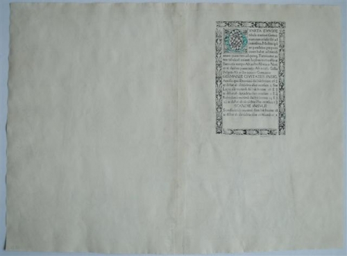 Houtsnede op zwaar papier. verso titel in kader met bordure. Gerest. midd. bov. en onderz. In zeer goede staat.