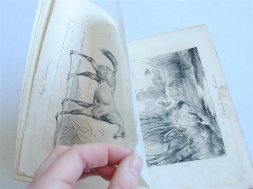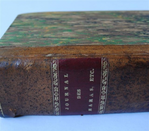 See the Dutch description: Journal des Haras, des Chasses et des courses de Chevaux, 1844. Ingebonden jaargang van dit blad in leren rug met marmeren platten. Tome X. 2 halfjaarg. in 1 bnd. (452 + 400 pag.) Met 24 paginagr. lith. van paarden, honden en jachttaferelen.