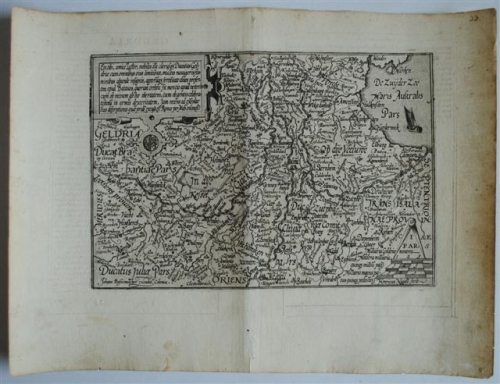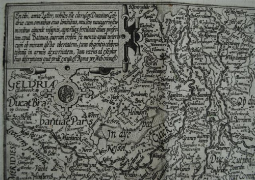 See the Dutch description: Geldria. Hertogdom Gelre met oml. geb. Quad. Keulen. 1594.
