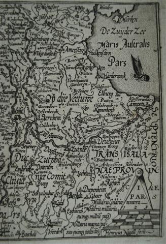 kopergravure. 18 x 26.5 cm. krtje in O.W. richting met o.a. de Zuijder Zee. cartouche met verkl.tekst l.b. div. vlekjes. l. gebr. in zeergoede staat. zz.
