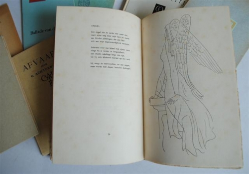 See the Dutch description: Afvaart. 1e dr. Bussum, Van Dishoeck, 1931. 64 p. Slap linn. DEBUUT. + Eurydice. 1e dr. Z.p., z.u., 1944. 33 p. pap. omsl. Oplage 275 ex., d.i. nr. 136. -EN: 8 andere van Achterberg in 1e dr. (totaal 10)