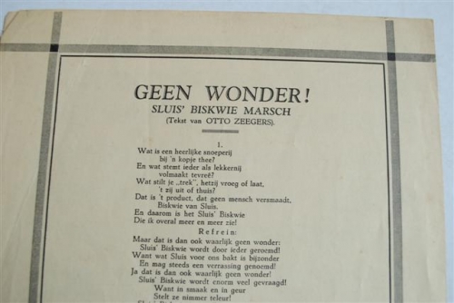 This item contains no English description. See the Dutch description: Sluis Marsch. Uitgave Sluis' Biskwiefabrieken N.V. Deventer. Folio vouwblad. Met gelith. voorblad.