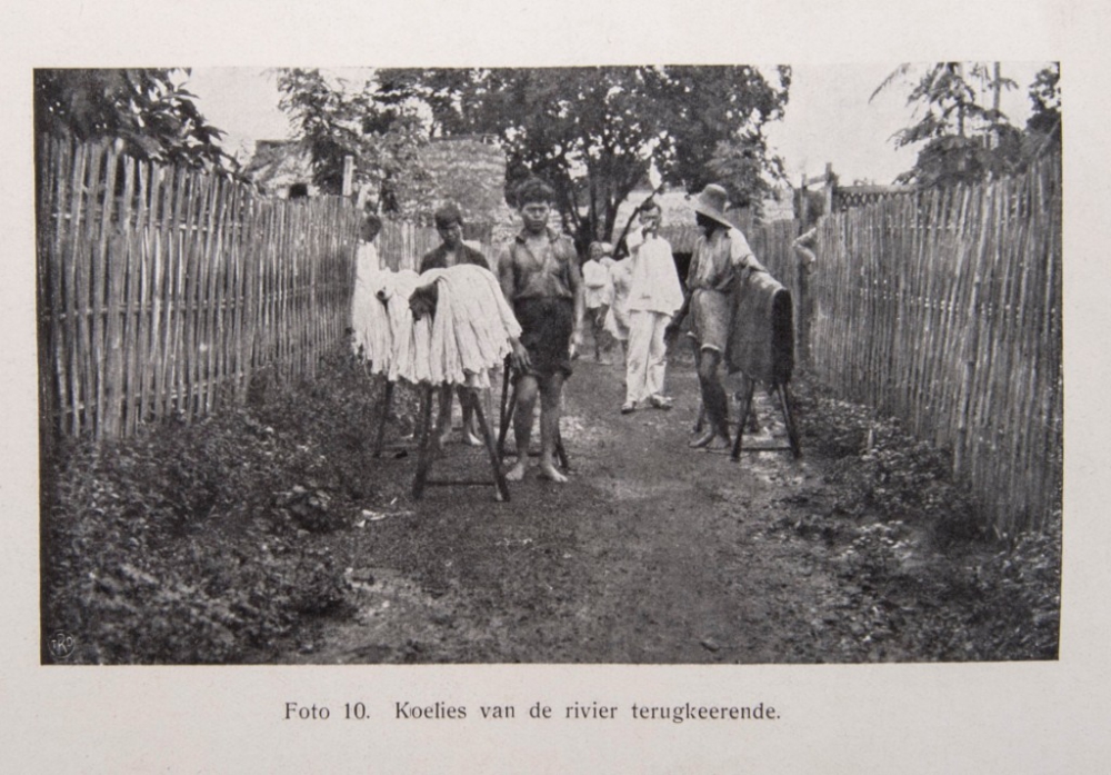 naar de arbeidstoestanden in de batikkerijen op Java en Madoera door den inspecteur bij het Kantoor van Arbeid P. de Kat Angelino. Weltevreden, Landsdrukkerij, 1930, 3 parts in 1 volume, XIX,(1),221; IX,(1)332; V,(1)171 p., with 60 prints, contemporary half-cloth, large 8vo.