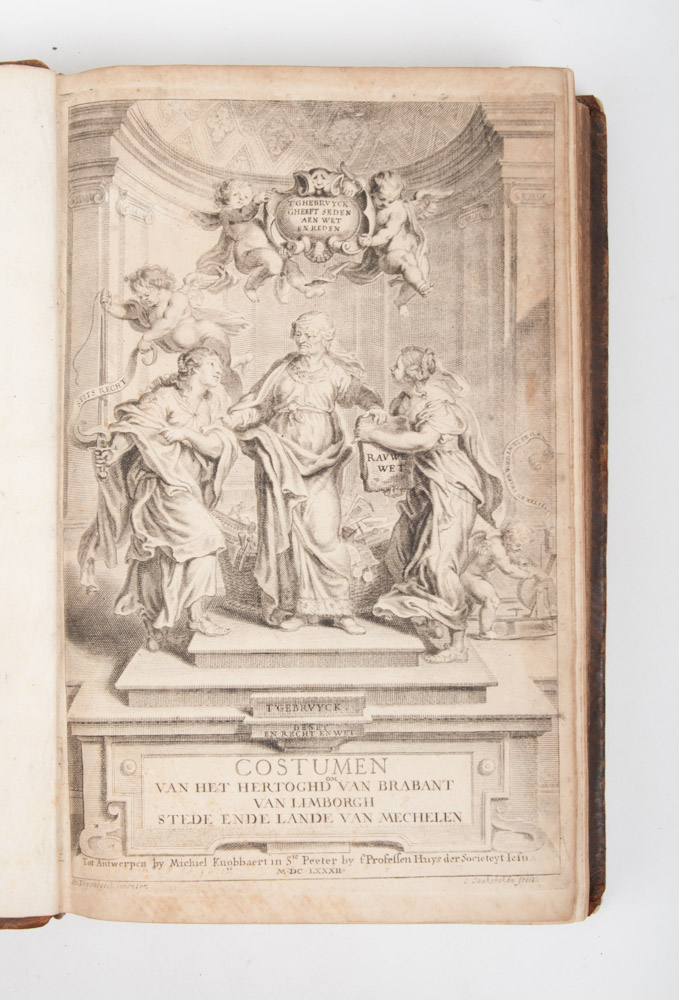 vanden lande ende Hertoghdomme van Brabandt midtsgaders van het Hertoghdom van Limborgh stede ende lande van Mechelen (..) Jan Baptiste Christyn, Antwerpen, Michiel Knobbaert, Prosessie-huys der Societeyt Jesu, In S. Peeter, 1682. (12),1420,(64) pp. Folio in 2 vols. With 2 copper-engr. frontispieces and several engravings in the text.
