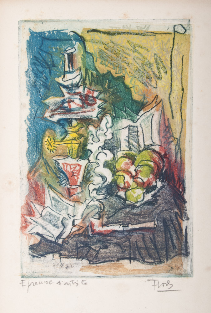 Published in 96 numbered, completley hand-crafted copies (printed by M. Frémy, with E. Durand), our copy is number I of 15 Roman numeral copies on "Hollande", with an original coloured etching signed "Flores" and "Épreuve d'artiste" in pencil, and a reproduction of the same separately inserted.