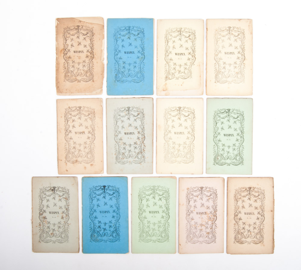 8vo., 13 brochures with ill. paper wrapping, most of which are loose. Sold with all faults. The KB (Royal Library) mentions 27 issues from 1844-1849. (13 in total)