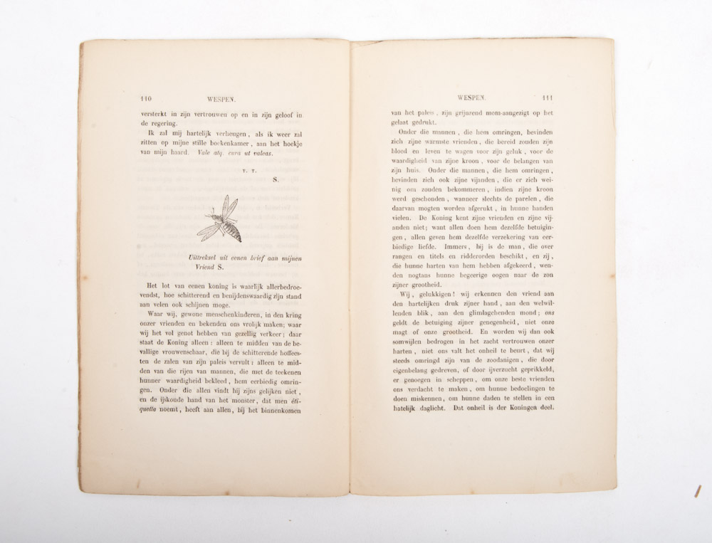 Politiek satyrisch tijdschrift, uitgegeven in Amsterdam en gedrukt door N.W. van Nifterick. The first 13 issues appeared in 1844-1846 with snide comments on religion and politics. Unusual collection of texts [author possibly Jacob van Lennep, who was a writer, poet, politician and editor].