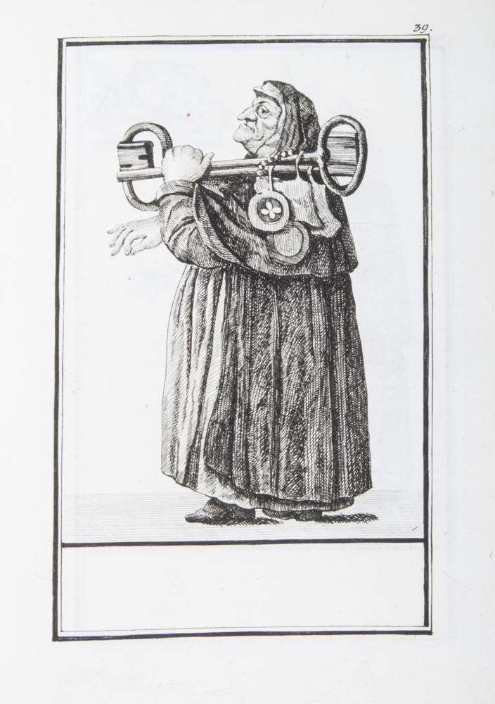 A near-untraceable reprint - almost a sort of early facsimile edition - of the original edition published ca. 1690 in Amsterdam. That edition included the frontispiece by Romeyn de Hooghe and 50 mezzotint plates by Jacob Gole after Cornelis Dusart. Only one copy of our edition appears to be in KVK (University of Amsterdam, dated ca. 1800) and we could not find any other copies with the exact same title and composition. That makes this particular edition much rarer than the original edition.