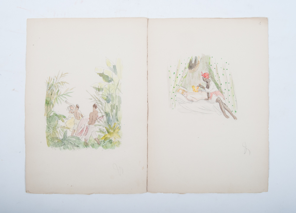 [Erotica in combination with slavery] 29 drypoint etchings finished as watercolours,