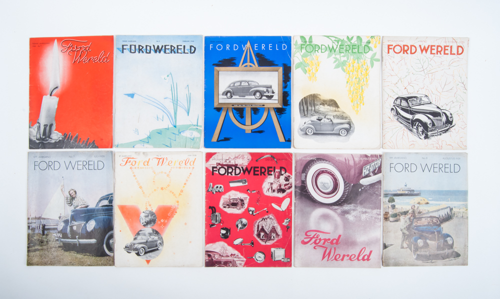 Lot with ca. 50 magazines about the Automobile. These include Ford Wereld, de Auto and de Kampioen. Mostly from the '30s. The issues of De Auto with cover design by Jean Walther.