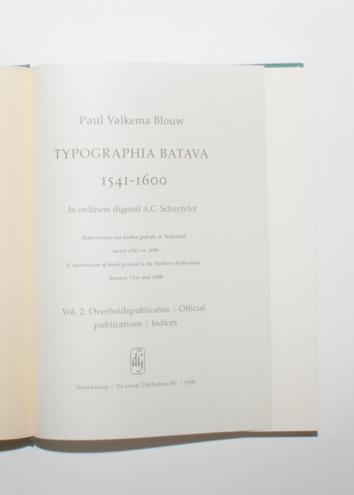 Repertorium van boeken gedrukt in Nederland tussen 1541 en 1600 / A repertorium of books printed in the Northern Netherlands between 1541-1600 (2 vols.), De Graaf Publishers, Nieuwkoop, 1998.