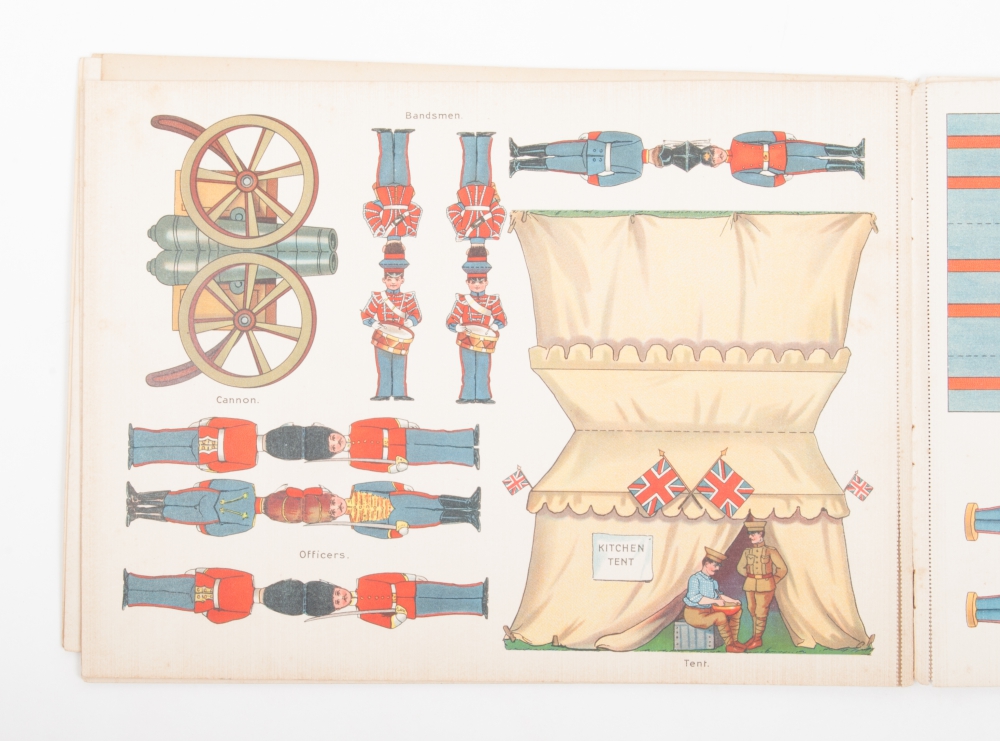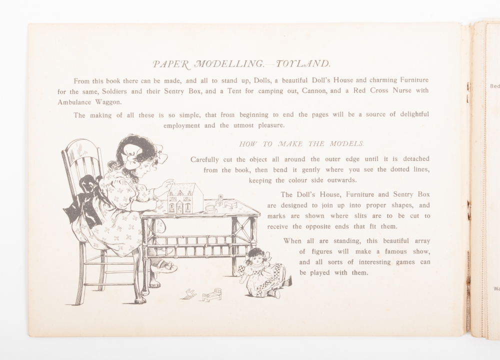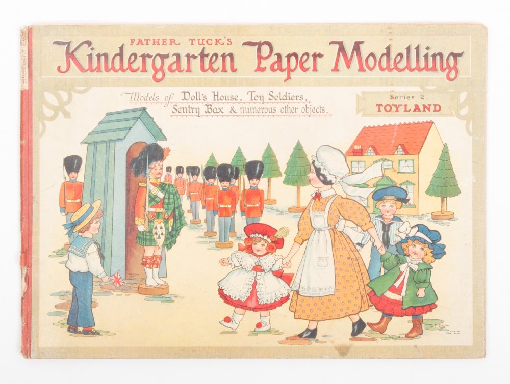 Series 2. Toyland. Models of Doll's House, Toy Soldiers, Sentry Box & Numerous other objects. Raphael Tuck & Sons, London, ca. 1907. 8 pp. (6 removable pages with paper models which can be cut out) oblong, half cloth.