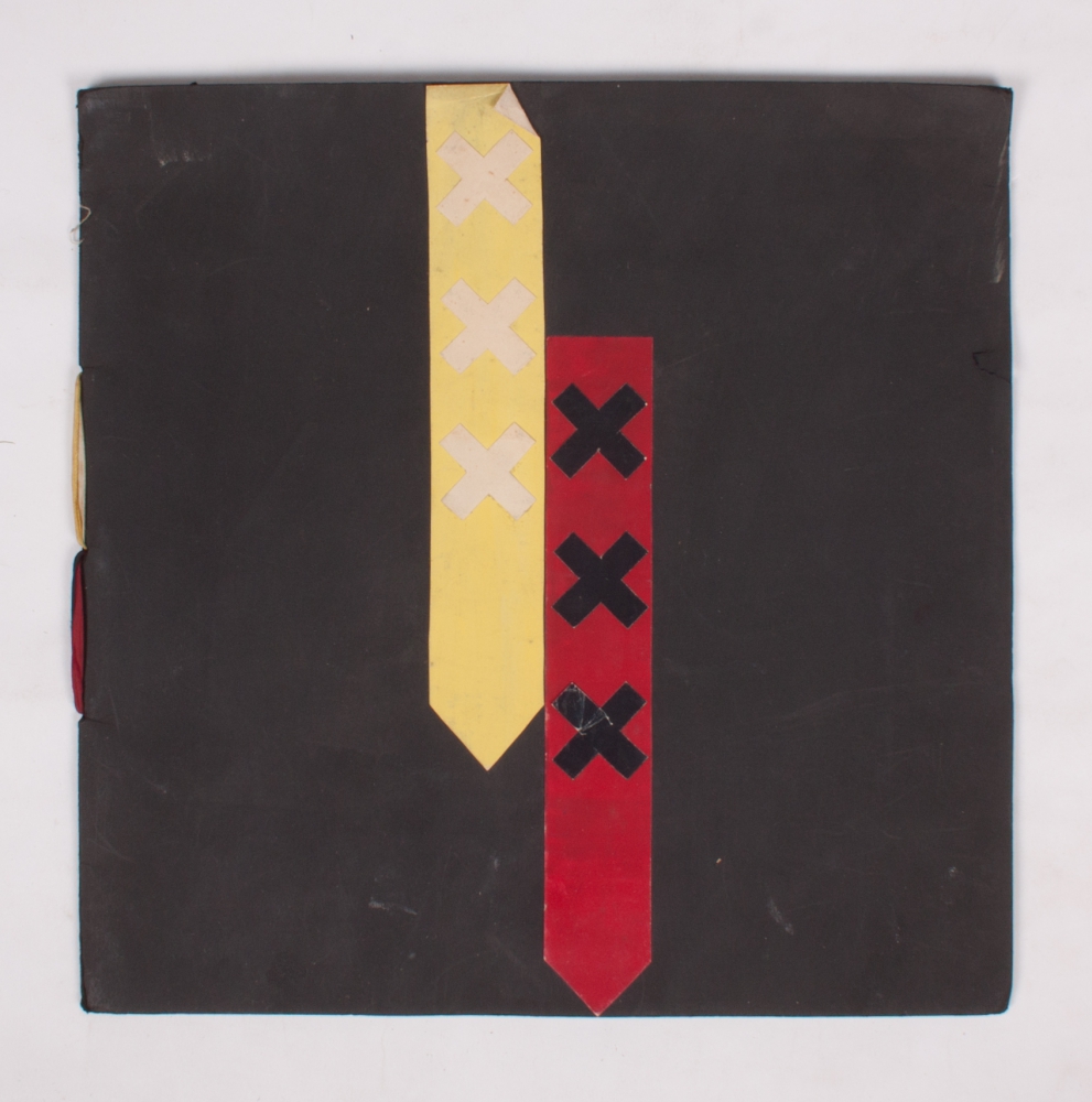 Album with 4 photos by photo bureau "Heno", all 18 x 24 cm., the album itself consists of 6 leafs heavy black paper, with the city arms of Amsterdam twice in coloured paper on the front cover, cord-bound, 33 x 33 cm.