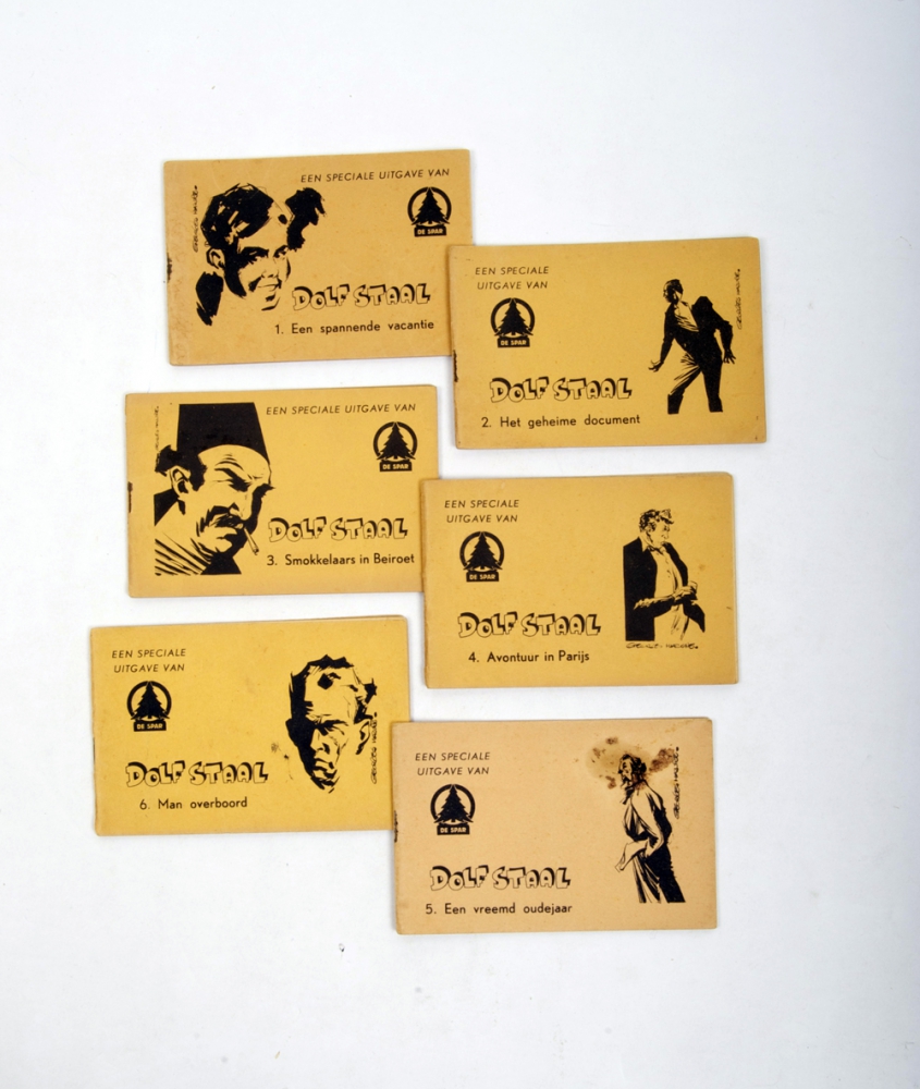 Promotion publication for Spar, 1954. Stapled oblong books. Complete series of 6 vols. Vol. 5 stained on cover, else in good condition.