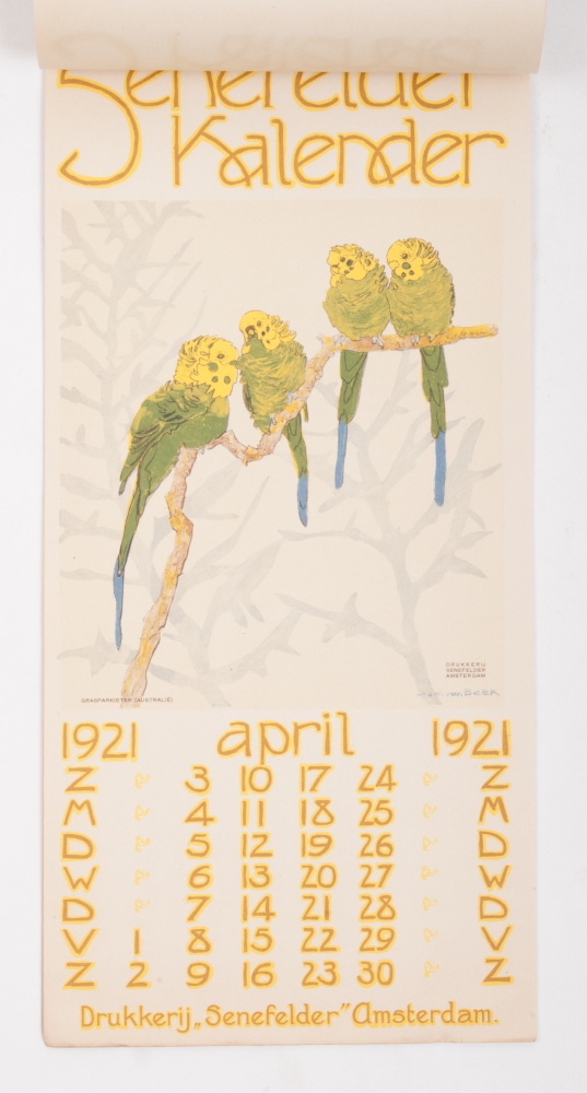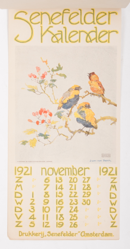 Lithography Sam van Beek. 12-leaf calendar. 43 x 20 cm. Fine copy.